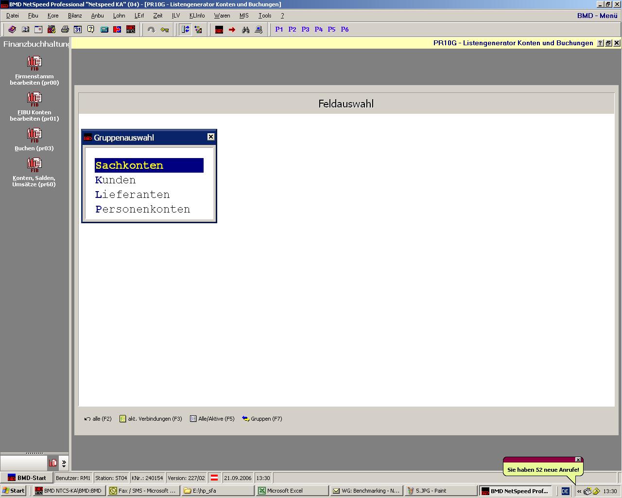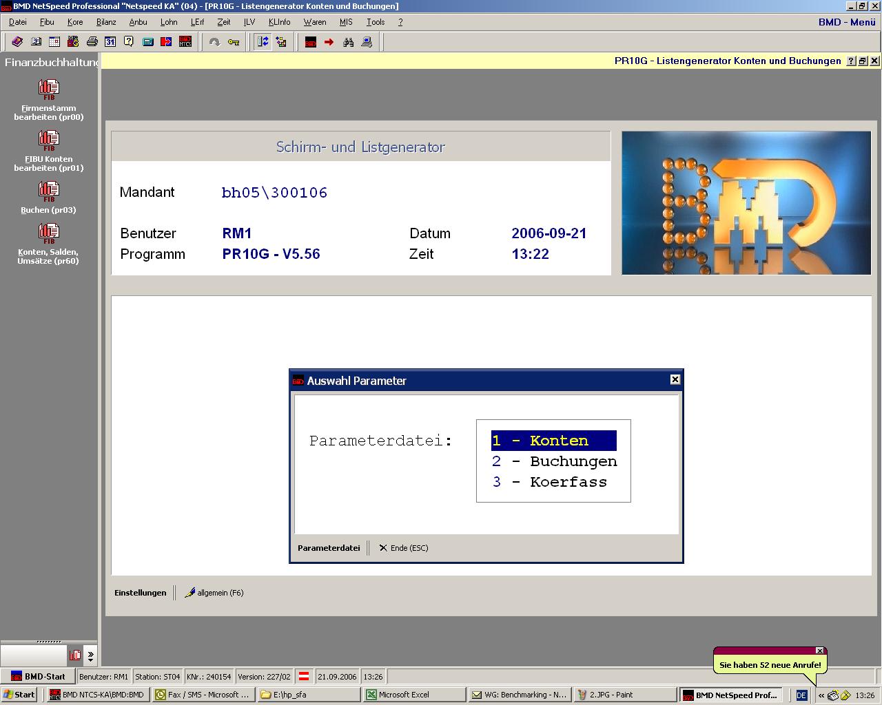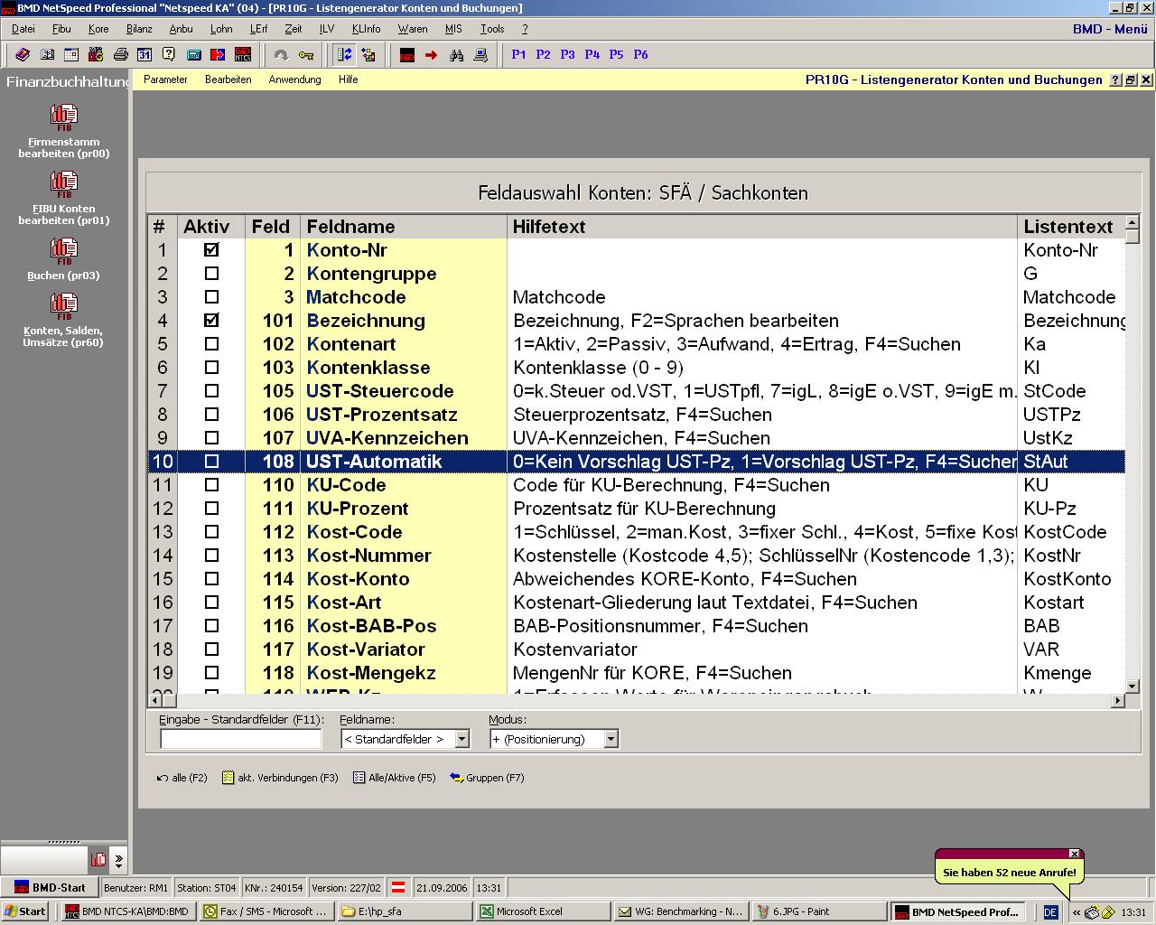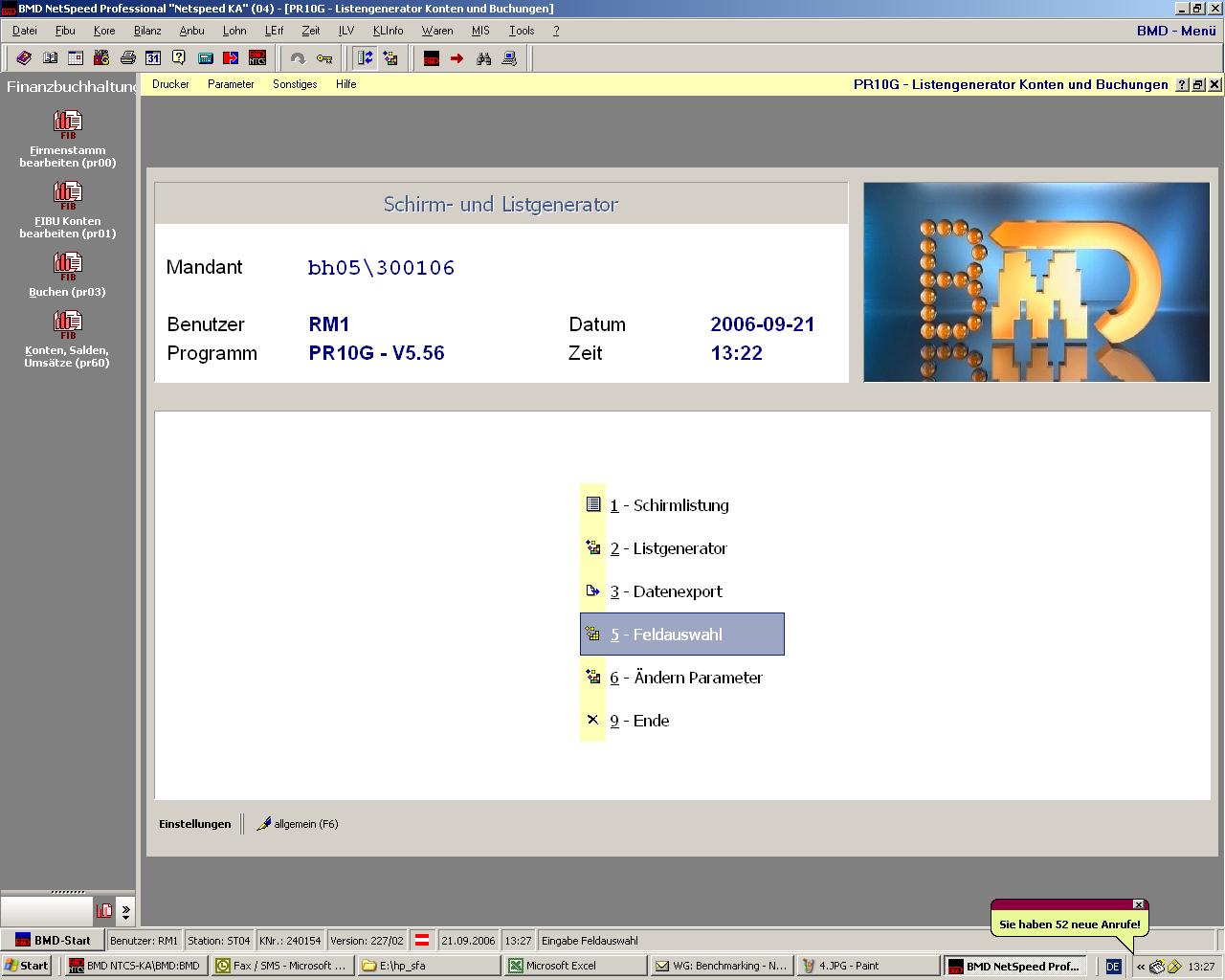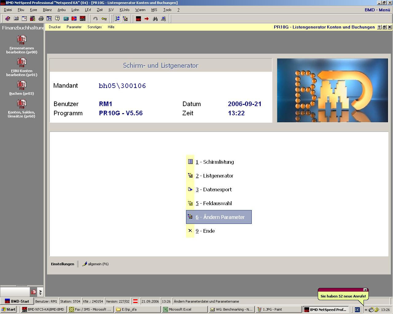 Programmteil PR10G (Schirm- und Listgenerator) aufrufen. Befindet sich im Menüzweig Finanzbuchhaltung / Stammdaten