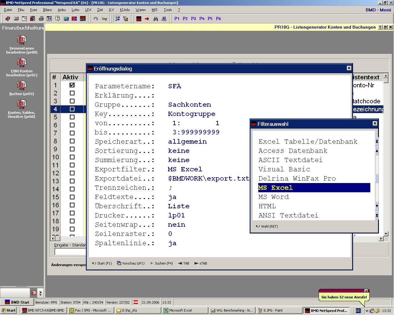 Parametername sollte auf SFÄ stehen, Exportfilter auf MS Excel